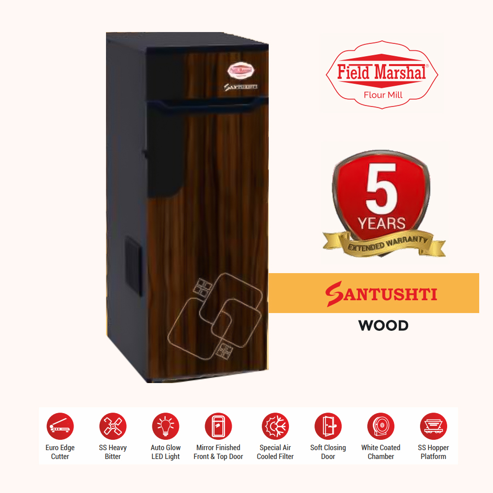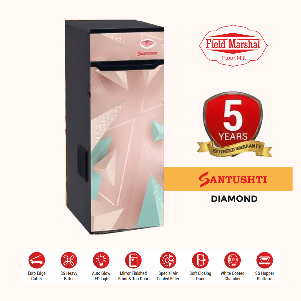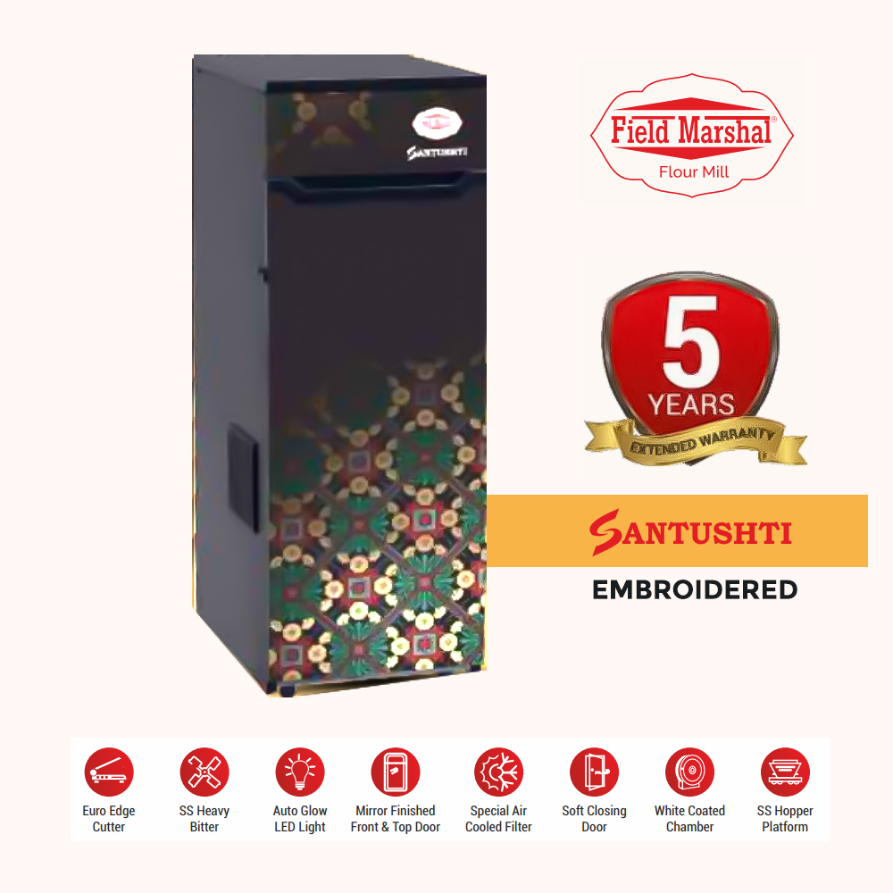 Fieldmarshal Flour Mill as the name suggests is an Electrical appliance used in grinding Flour, Masala from the grains like Wheat, Corn, Bajra, Rice, Spices etc. Keeping in view of Hygiene, Safety, Purity and Food Grade quality material has been used for the desired output at very economical, competitive price range. It is completely user and Eco Friendly Appliance as whole operation is Fully Automatic and Dust Free.